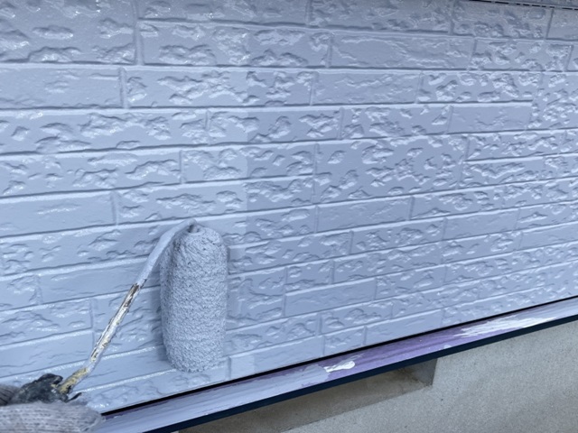 中塗りは実際に仕上げ塗料を使って塗る最初の工程です。塗膜を厚くして強度を増し、耐久性を高める役割を果たします。この段階で、色や仕上がりが一部確認できるようになります。