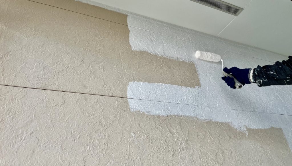 最初に行うのが「下塗り」です。下塗りは、塗料の密着性を高め、表面を均一に整えるための工程です。下塗り材が表面を整え、上塗り塗料がしっかりと定着できるようにします。