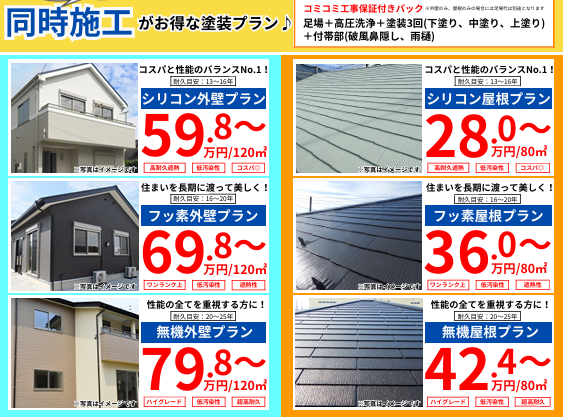 - シリコン、フッ素、無機塗料から選べる3つのプラン