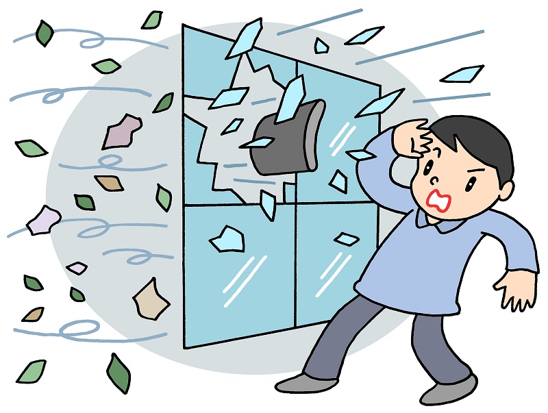 台風で窓が割れる原因のほとんどは強風で飛ばされたものがぶつかる為です。窓ガラスが割れることで強い雨や風が室内へ一気に流れ込み、場合によっては屋根が吹き上がってしまう可能性もあります。窓自体に問題がなくともこういったリスクがあります。