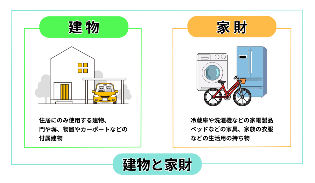 なお、火災保険の契約内容により補償対象が「建物」とした場合、「家財」とした場合、「建物と家財」とした場合があります。家財に被害を受けても家財の補償が契約されていなければ補償を受けることはできません。