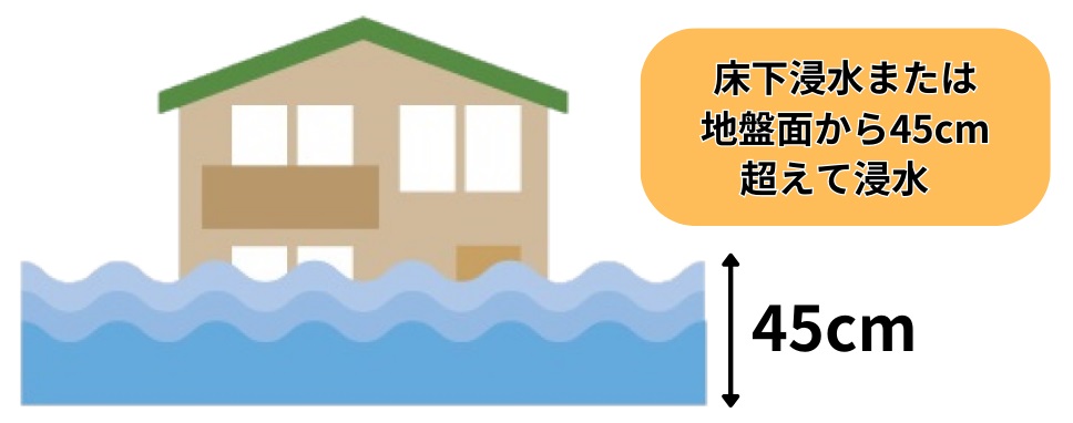 | 被害状況 | 台風、暴風雨、豪雨等による洪水、融雪洪水、高潮、土砂崩れ、落石などによる被害(床下浸水または地盤面から45cm超えた浸水) |