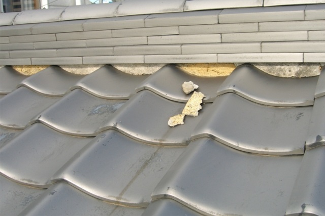 - 棟瓦の中が見えている
