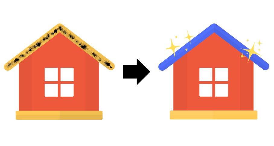 屋根葺き替えとは既存の屋根を全て解体、撤去し、新しい屋根材に替えることをいいます。葺き替えの場合、屋根材だけでなく、防水シートや野地板といった下地も新しくする施工法です。