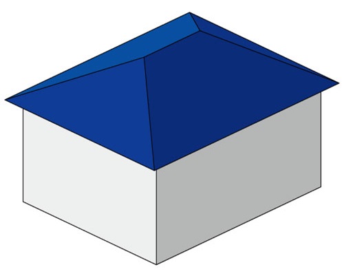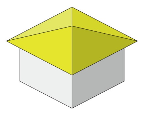 方形屋根とは、四つの三角形の屋根面が中央の頂点で合わさる形をしています。