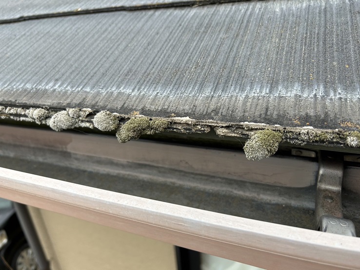 軒に藻が生えている