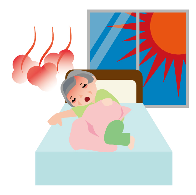 屋内で起こる熱中症の中で、特に夜間に熱中症を発症するケースが多いようです。断熱が不十分な建物や風通しの悪い部屋では、日中に籠った熱が夜になっても排出されず、夜間でも屋内が高温のまま続くことがあります。