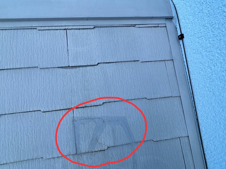 これも、表面の塗装が劣化していることで、外的要因を屋根材が直接受けてしまうため、屋根材が脆くなってしまうのです。また、台風や強風などによる飛来物の衝撃を受ける場合もあります。