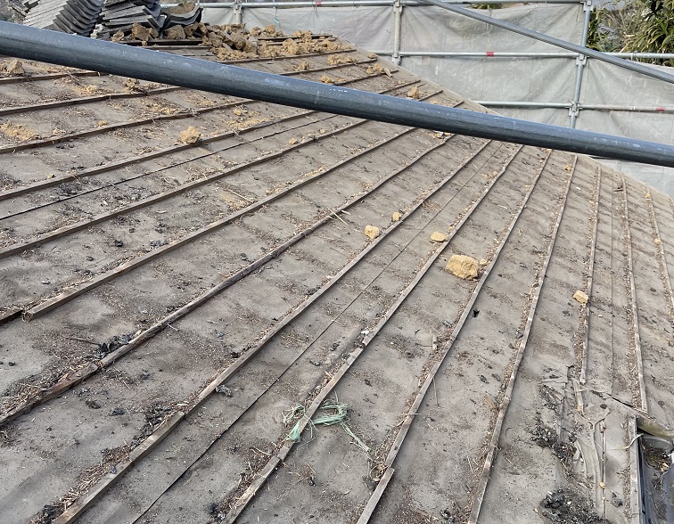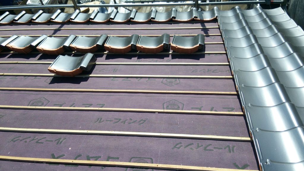 既存の屋根が瓦屋根の場合、瓦の厚みや形状により表面が平らではないことや、重量があるためカバー工法で施工できません。なので必然的に葺き替えが必要になります。