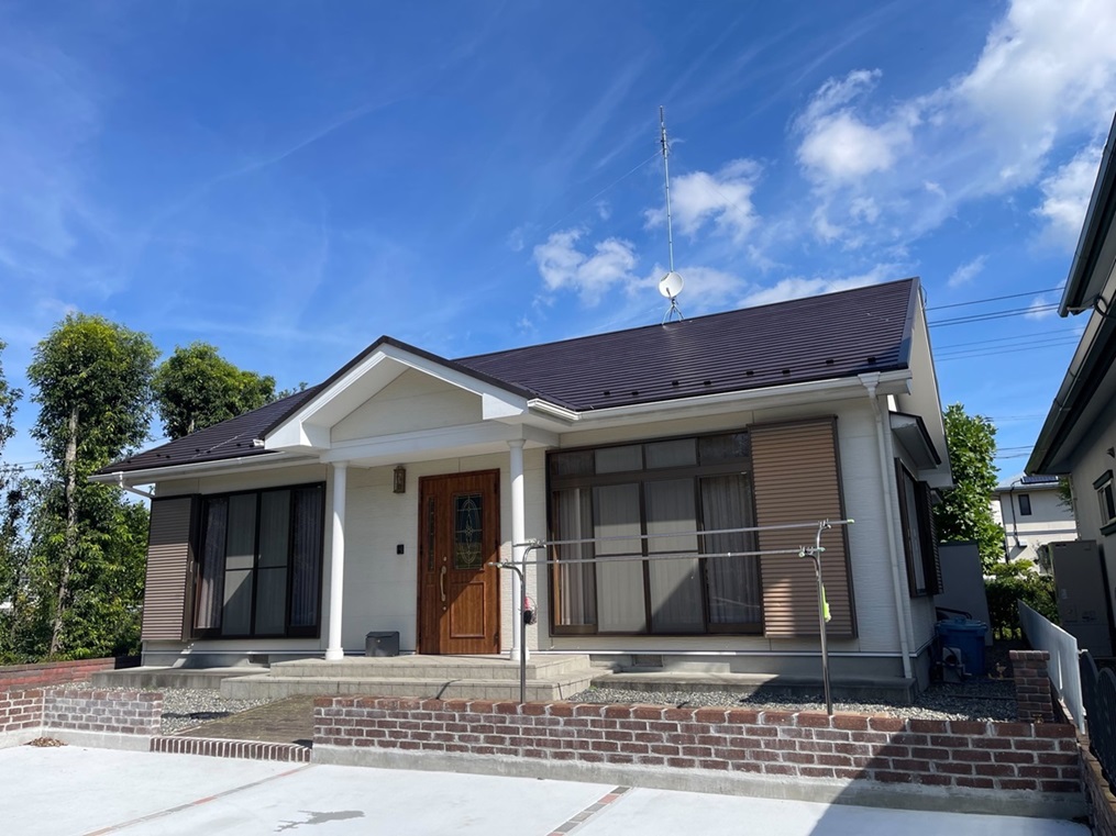 いわき市にて色褪せが目立つ劣化したコロニアル屋根をカバー工法でガルバリウム鋼板屋根に施工しました