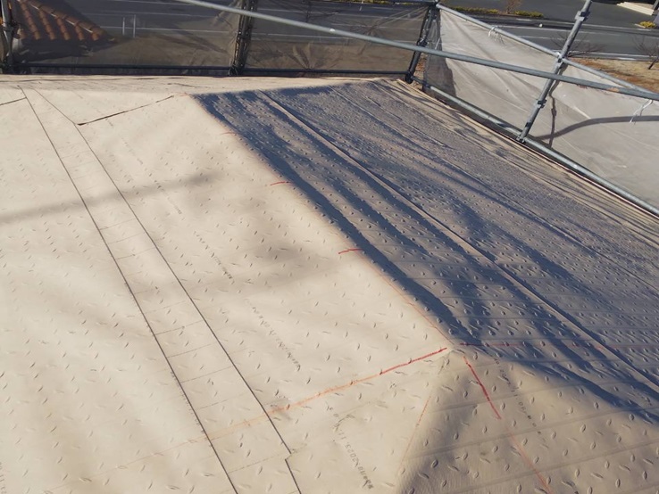 古い瓦を全て取り外し、下のルーフィング材と呼ばれる防水シートも新しくします。
