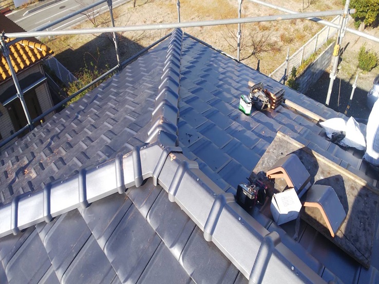 今回新しくした瓦は防災瓦とも呼ばれ、瓦にフック部分があり、隣同士の瓦をフックで引っかけ連結させることができます。