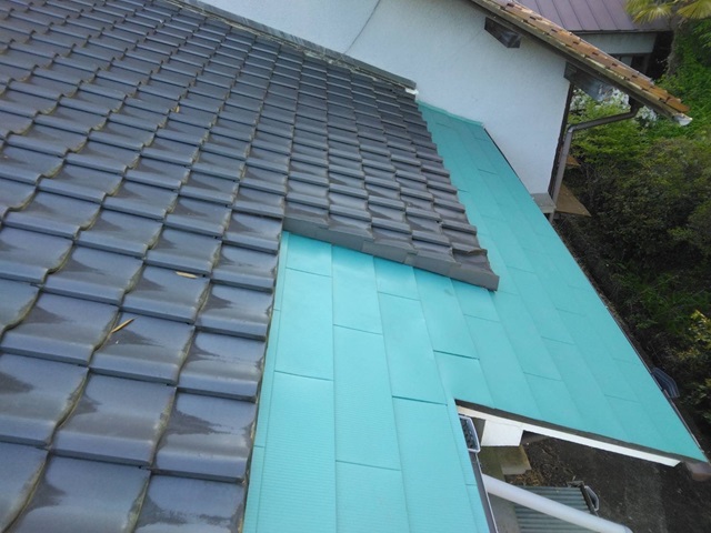 いわき市にて雨漏りする腰葺きの銅板をガルバリウム鋼板へ交換する屋根工事を行いました