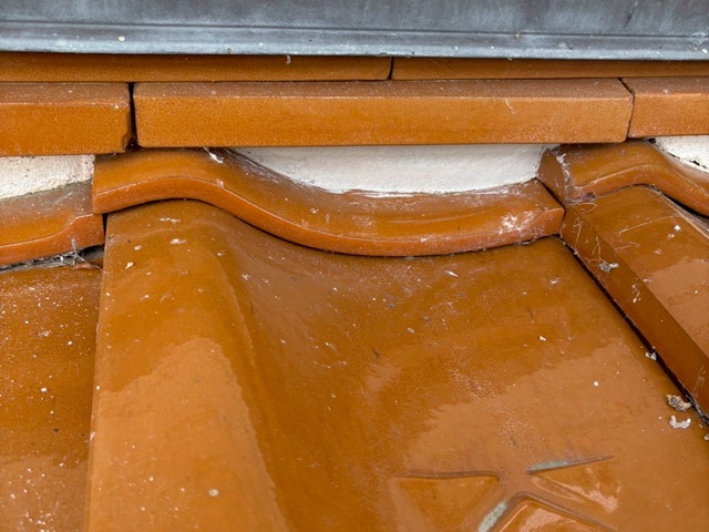このような状態が見受けられます。つまり、棟の固定力が弱まり、雨水も入りやすい状態ということです。このまま放置すると、棟瓦のズレや雨漏り、強風で棟瓦が飛散するもあります。