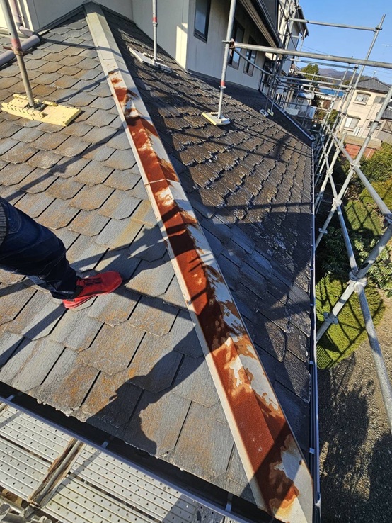 いわき市にて錆が進行した棟板金を内部から交換する屋根工事を行いました