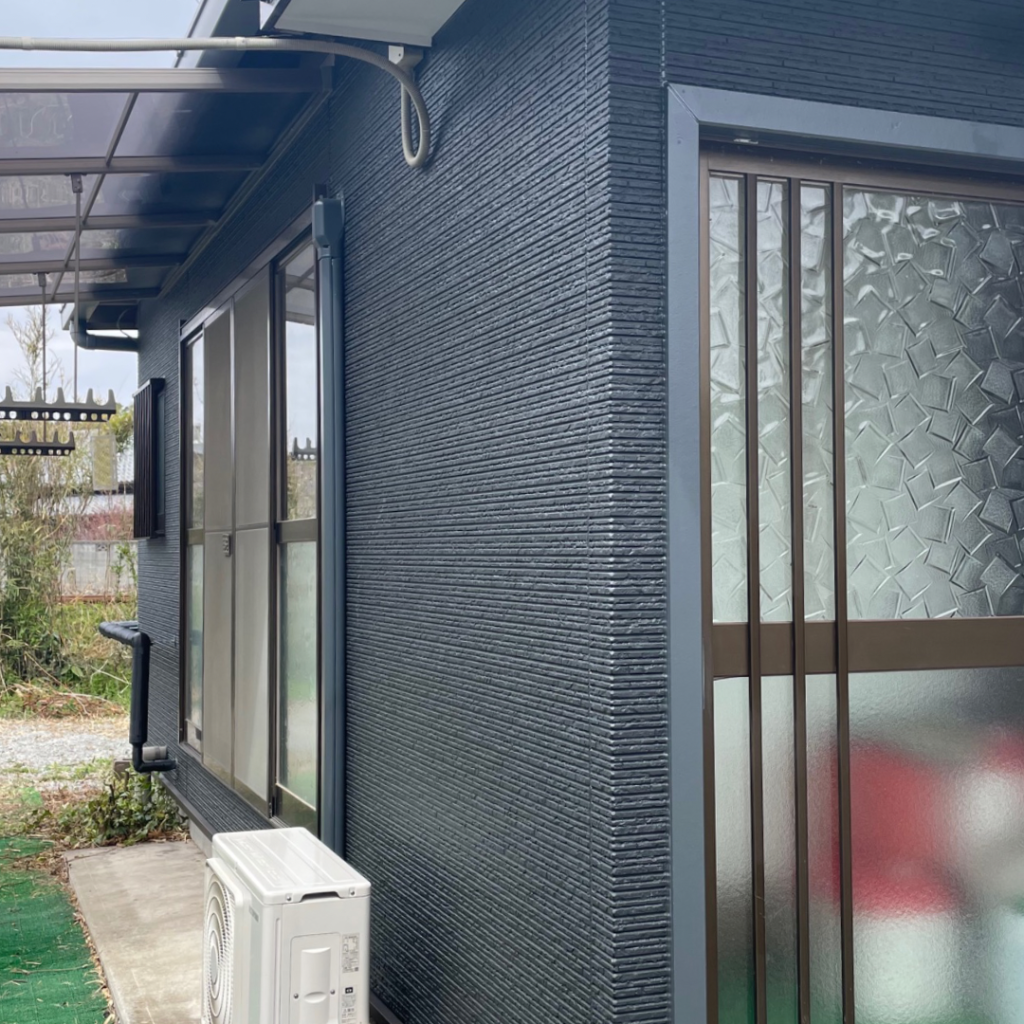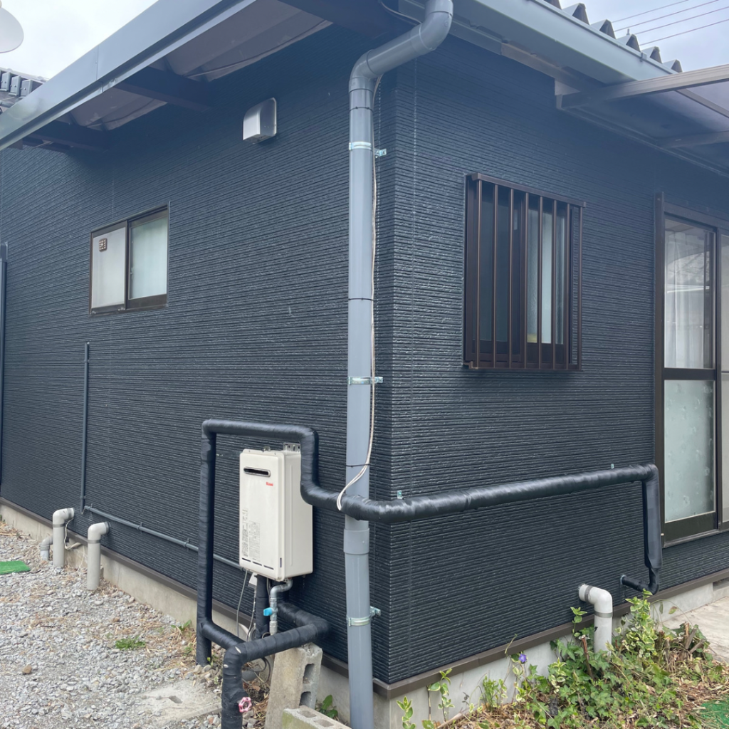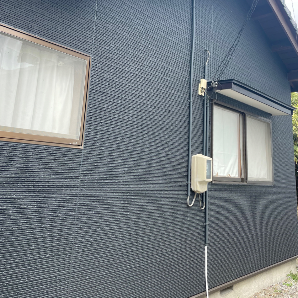 トタン外壁側が元でモルタル外壁側が増築された構造になっておりました。外壁を解体し、サイディング外壁に生まれ変わりました。ブラックの外壁でシックな雰囲気になり、印象がガラリと変わりました◎