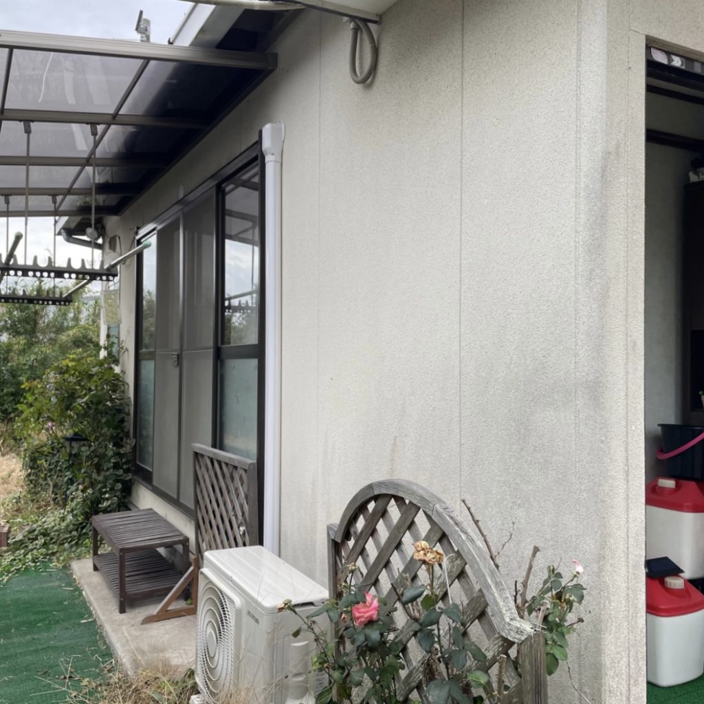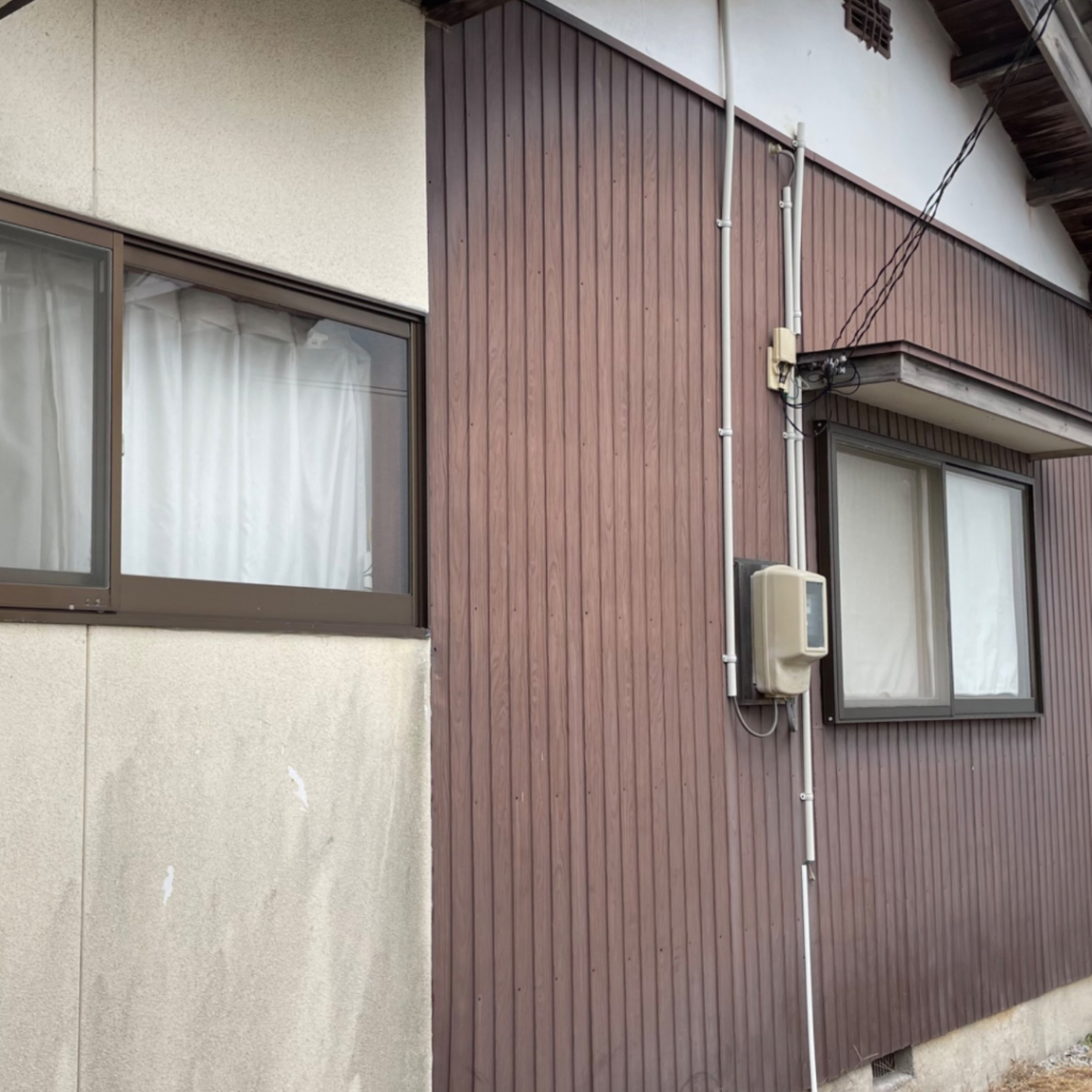 こちらのお家は玄関から左側がトタン外壁で玄関側がモルタル壁にでした。